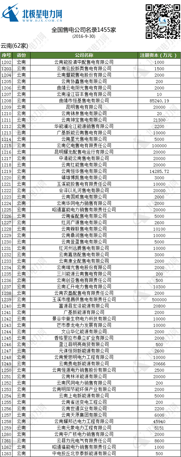 全國售電公司名錄(1455家)