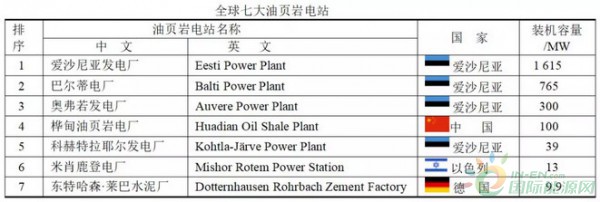 表中七大油頁巖電站所使用的燃料不是頁巖油,而是油頁巖。