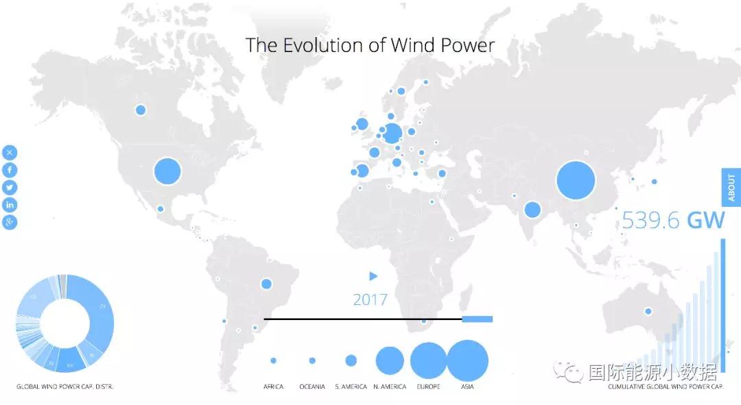 根據(jù)Greenbyte網(wǎng)站的數(shù)據(jù),2017年底全球風(fēng)電累計(jì)裝機(jī)達(dá)到539.6吉瓦,其中裝機(jī)前10名的國家
