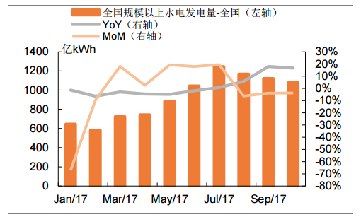 2017年1-10月水電發(fā)電量同比增長2.2%