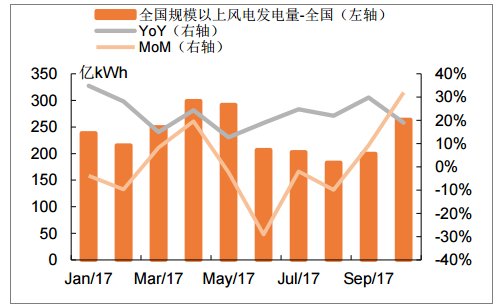 2017年1-10月風電發(fā)電量同比增長25.3%