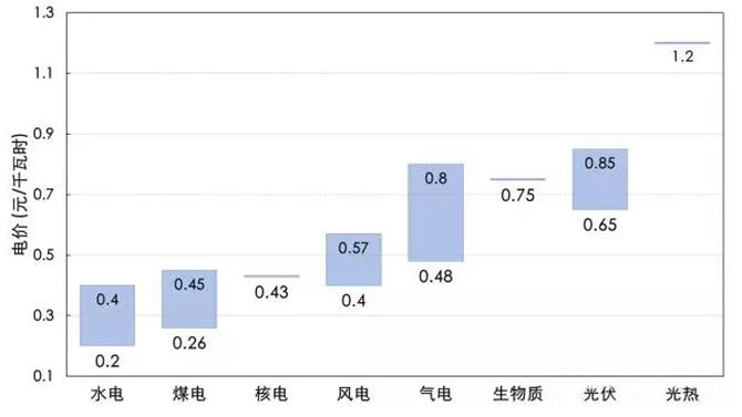 圖4  各類發(fā)電類型上網(wǎng)電價水平比較