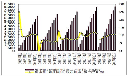 第三產(chǎn)業(yè)累計用電量和同比增速
