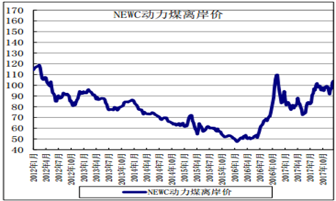 澳大利亞 New Castle 港動力煤離岸價(美元/噸)