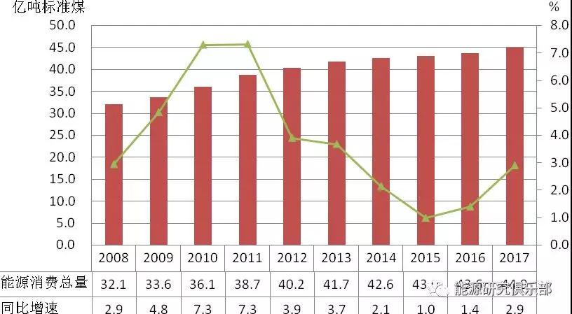 圖1-7 2008~2017年能源消費(fèi)總量及增速