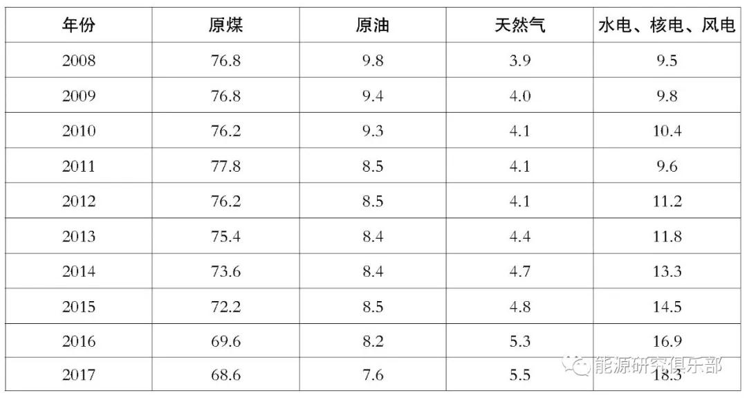 2017年能源生產(chǎn)結(jié)構(gòu)中,原煤占比68.6%,原油占比7.6%,天然氣占比5.5%,水電、核電、風(fēng)電等占比18.3%。