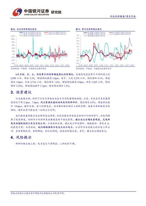 9 月電力行業(yè)數(shù)據(jù)點(diǎn)評。
