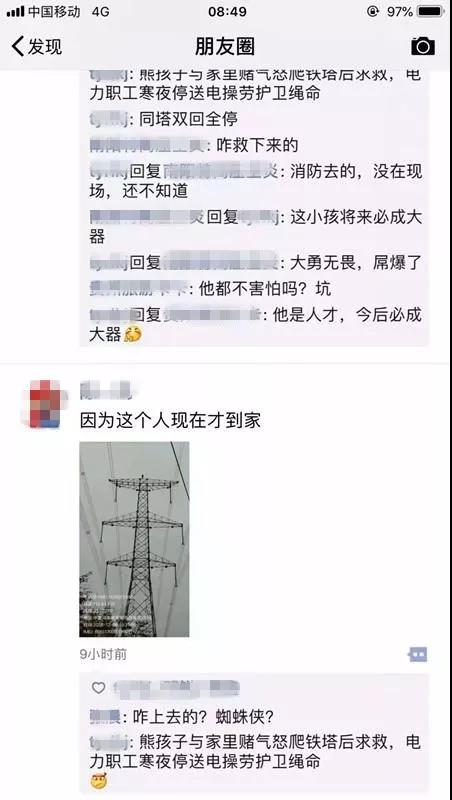 那么,這個9歲的熊孩子,為啥要往高塔上爬呢?經(jīng)初步了解,是他和家人賭氣,一時想不開,而爬到了高壓線塔上。而他自己,根本不了解高壓線塔的危險。