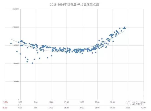 圖3 某省市日電量-平均溫度散點(diǎn)圖(萬千瓦時(shí))