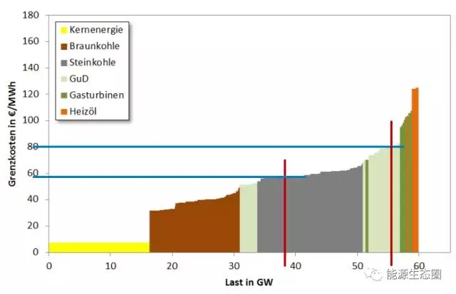 在一個(gè)邊際成本決定市場價(jià)格的電力市場中,這種低邊際成本將無限壓低市場整體的價(jià)格水平,這稱之為“merit-order”效應(yīng)(優(yōu)先次序效應(yīng))。