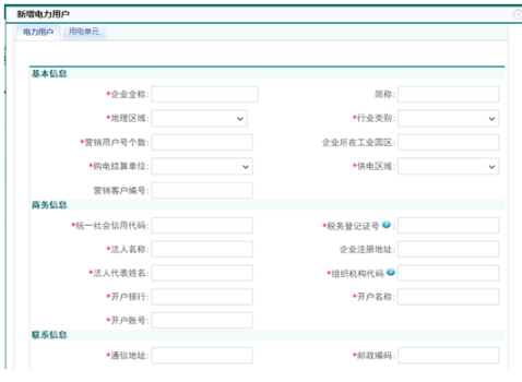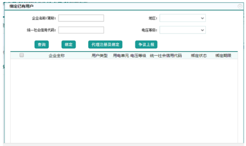 2. 新增代理用戶。如果售電公司要綁定的用戶在系統(tǒng)中不存在,則可以點擊“代理注冊及綁定”,通過此功能新增用戶及相應的用電單元。如下圖所示: