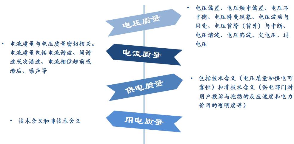 用電質(zhì)量:真正的電能質(zhì)量是用電和供電共同構(gòu)成的。用電質(zhì)量也包括技術(shù)含義和非技術(shù)含義。技術(shù)含義方面,對(duì)用戶來講,用電設(shè)備是否會(huì)導(dǎo)致一些電能質(zhì)量問題,例如是否會(huì)向電網(wǎng)注入諧波,是否會(huì)無(wú)功超標(biāo)等,目前電網(wǎng)公司對(duì)這兩塊都是有定義的,也有相關(guān)的管理措施,不管是無(wú)功超標(biāo)還是諧波超標(biāo)都會(huì)進(jìn)行罰款。用電質(zhì)量的非技術(shù)含義就是用戶本身對(duì)電能質(zhì)量問題的理解,例如在電能質(zhì)量問題發(fā)生的時(shí)候設(shè)備的一些特性等,這些用戶都應(yīng)該有一定的了解,但是真正了解的用戶其實(shí)并不多。