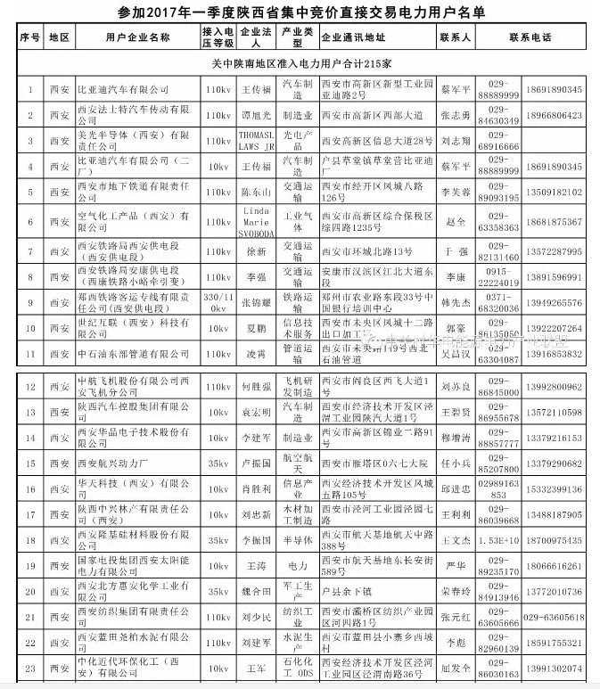 附件2:參加2017年一季度陜西省集中競(jìng)價(jià)直接交易電力用戶名單