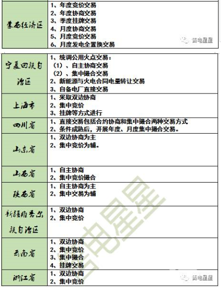 各省直接交易方式看下表哈: