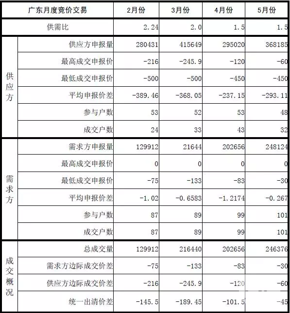 2-5月份,需求方參與戶數(shù)分別為87戶、89戶、99戶、101戶,成交戶數(shù)分別為87戶、89戶、99戶、101戶,即需求側(cè)參與戶數(shù)全部成交。這是一個(gè)理所當(dāng)然的結(jié)果。