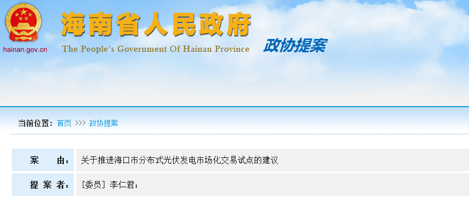 海南省人民政府日前發(fā)布了一則《關(guān)于推進(jìn)海口市分布式光伏發(fā)電市場(chǎng)化交易試點(diǎn)的建議》的政協(xié)提案,詳情如下:當(dāng)前世界各國(guó)都非常重視潔凈能...