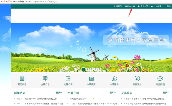 在瀏覽器中訪問 http://pmos.sd.sgcc.com.cn/,點擊右上角【用戶注冊】