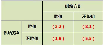 如經(jīng)典的供給方博弈,如果雙方降價,雙方的收益必然都減少;如一方降價而另一方不降價,則降價一方收益增加。