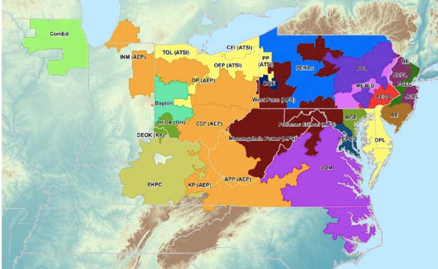 PJM覆蓋區(qū)域,不同色塊代表不同輸電區(qū)