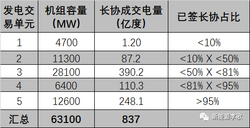 如果長協(xié)簽約電量只有市場化總電量的50%左右,大致結(jié)果如下表: