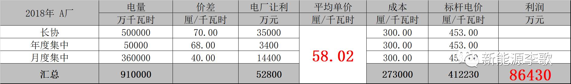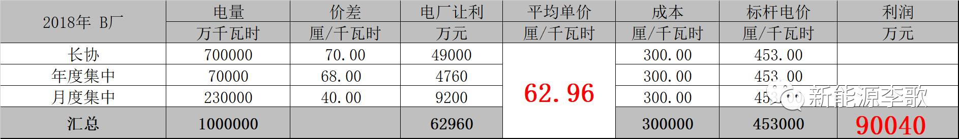 見下表分解比較:(同類型機組的A B兩廠市場電量100億為例說明)