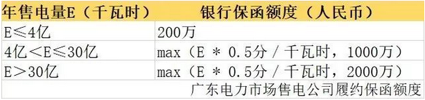 根據(jù)我們測(cè)算,對(duì)于一個(gè)年售電量在10億的普通售電公司來說,沒有授信,履約保函一年需要凍結(jié)資金500萬,手續(xù)費(fèi)15萬左右。廣東某售電公司老總:我那天開車問過我們當(dāng)?shù)氐乃秀y行,這個(gè)保證金必須是全額繳納,是很