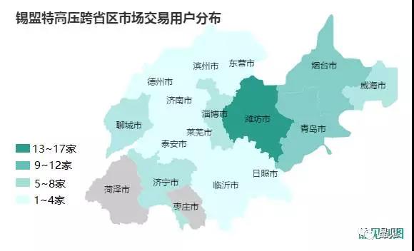 從下面的圖我們可以發(fā)現(xiàn),山東省可以參與跨省區(qū)交易的電力用戶主要集中在東營(yíng)、濰坊、青島、臨沂。
