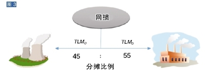 其中TLMD為發(fā)電側(cè)使用的輸電網(wǎng)損乘數(shù),TLM0為用戶側(cè)使用的輸電網(wǎng)損系數(shù)。目前,英國平衡服務(wù)規(guī)則規(guī)定使用的α為0.45,即有45%的輸電網(wǎng)損電量由發(fā)電側(cè)承擔(dān),剩余55%的網(wǎng)損電量由負荷側(cè)承擔(dān)(見圖3)。