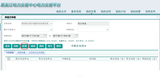 進(jìn)入申報方申報頁面后,點(diǎn)擊新增:
