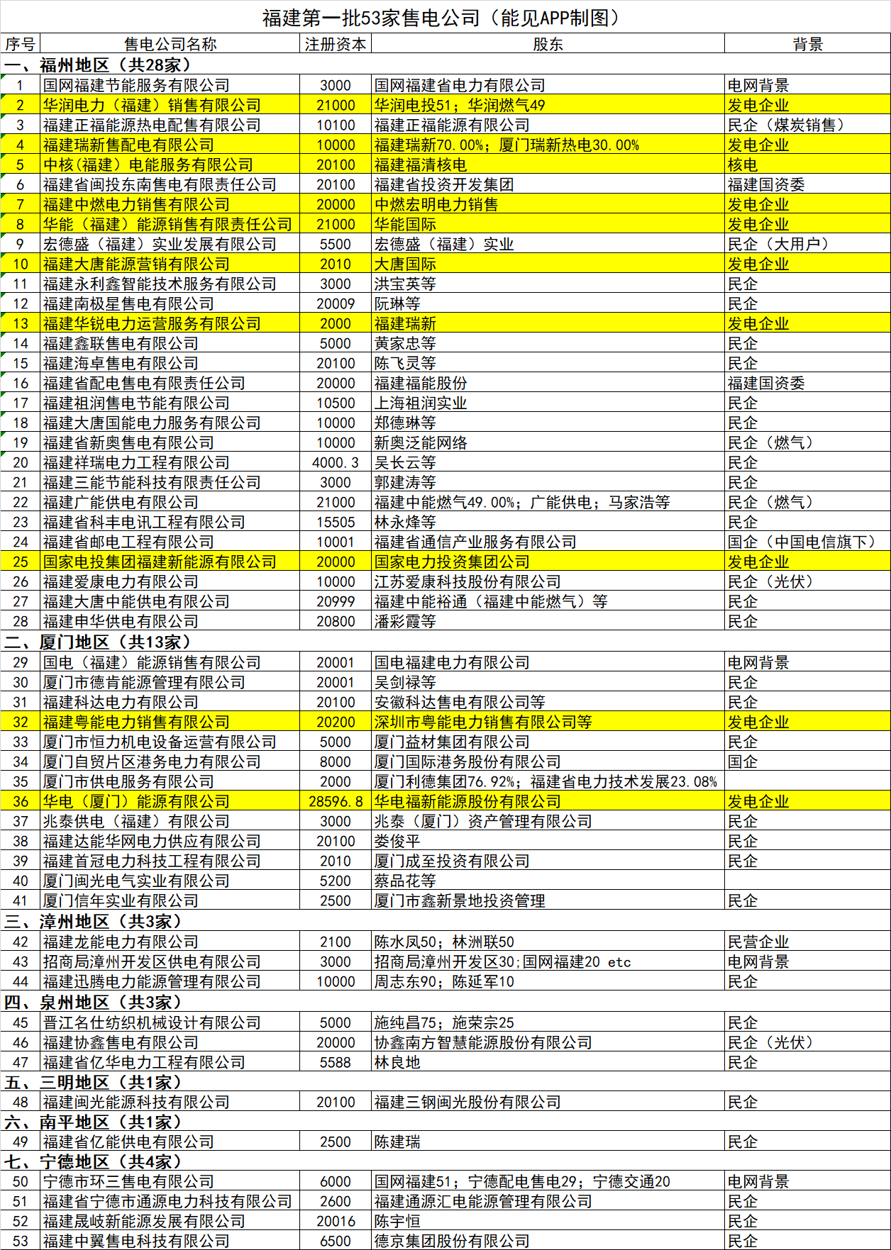 福建首批53家售電公司公示, 民營售電公司成絕對主力