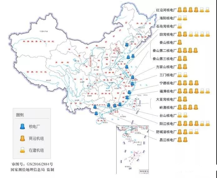 中國大陸核電廠分布圖