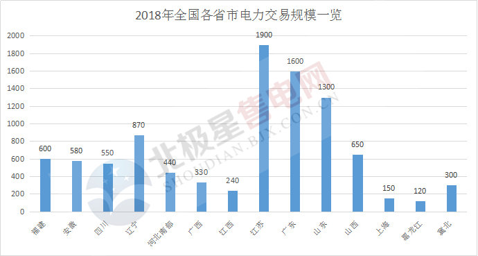 規(guī)??涨?全國2018年14個省市交易規(guī)模9630億千瓦時