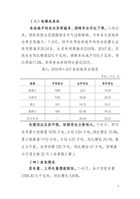 信息披露 | 四川2018年三季度電力生產及市場運營信息披露報告