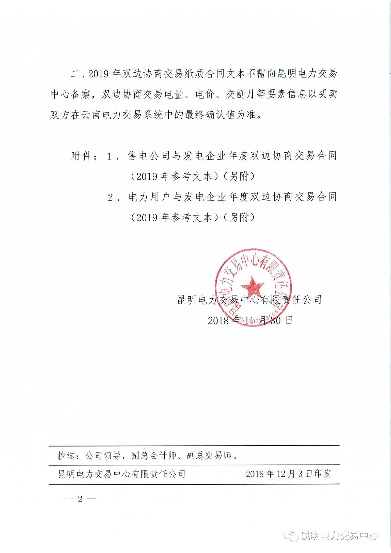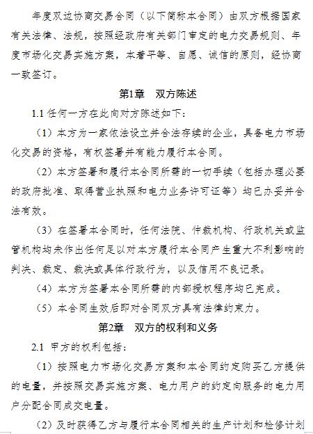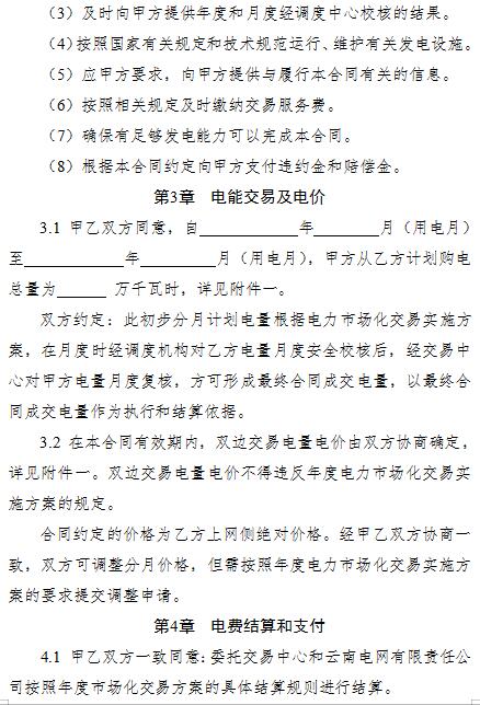云南2019年年度雙邊協(xié)商交易合同(參考文本)發(fā)布