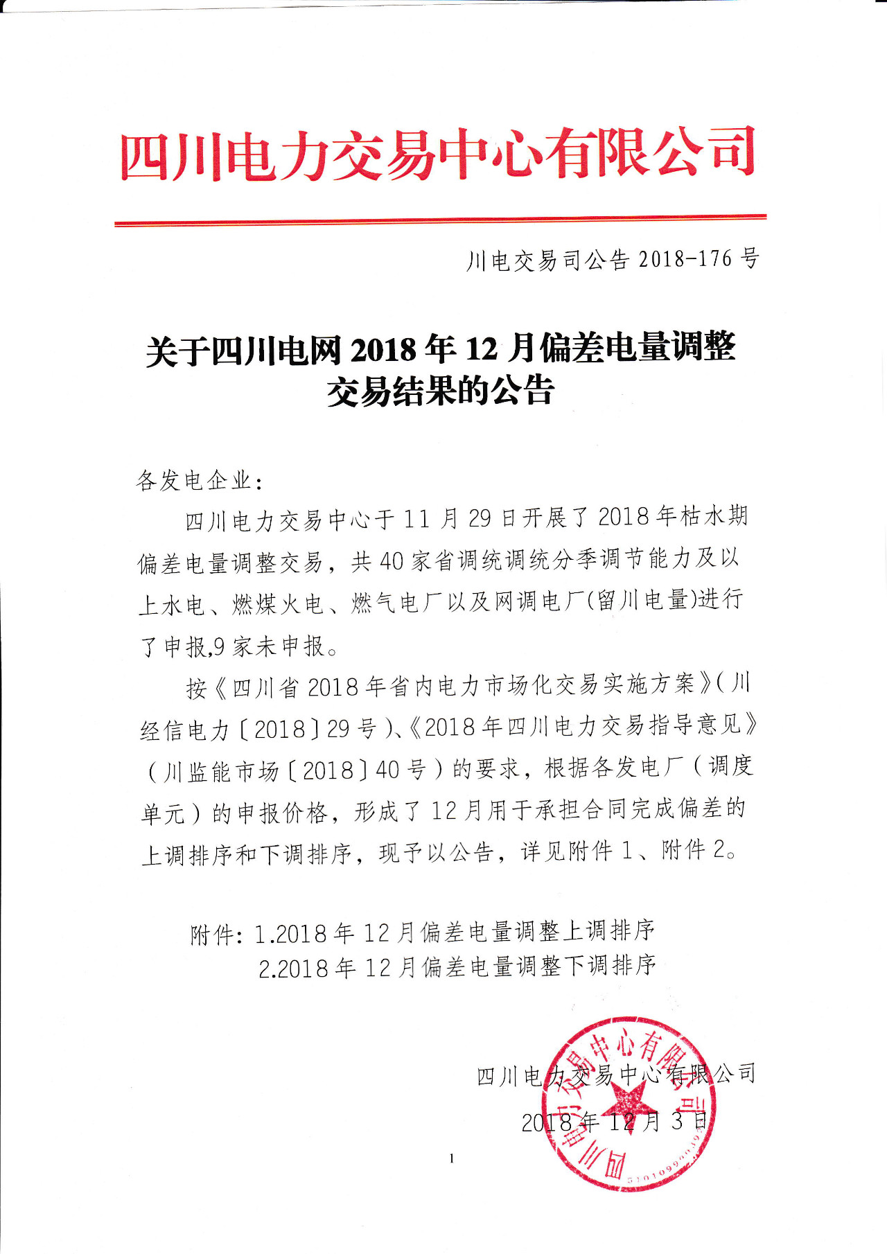 據(jù)悉,四川電力交易中心日前發(fā)布了《關(guān)于四川電網(wǎng)2018年12月偏差電量調(diào)整交易結(jié)果的公告》,40家電廠申報(bào),9家未申報(bào)。