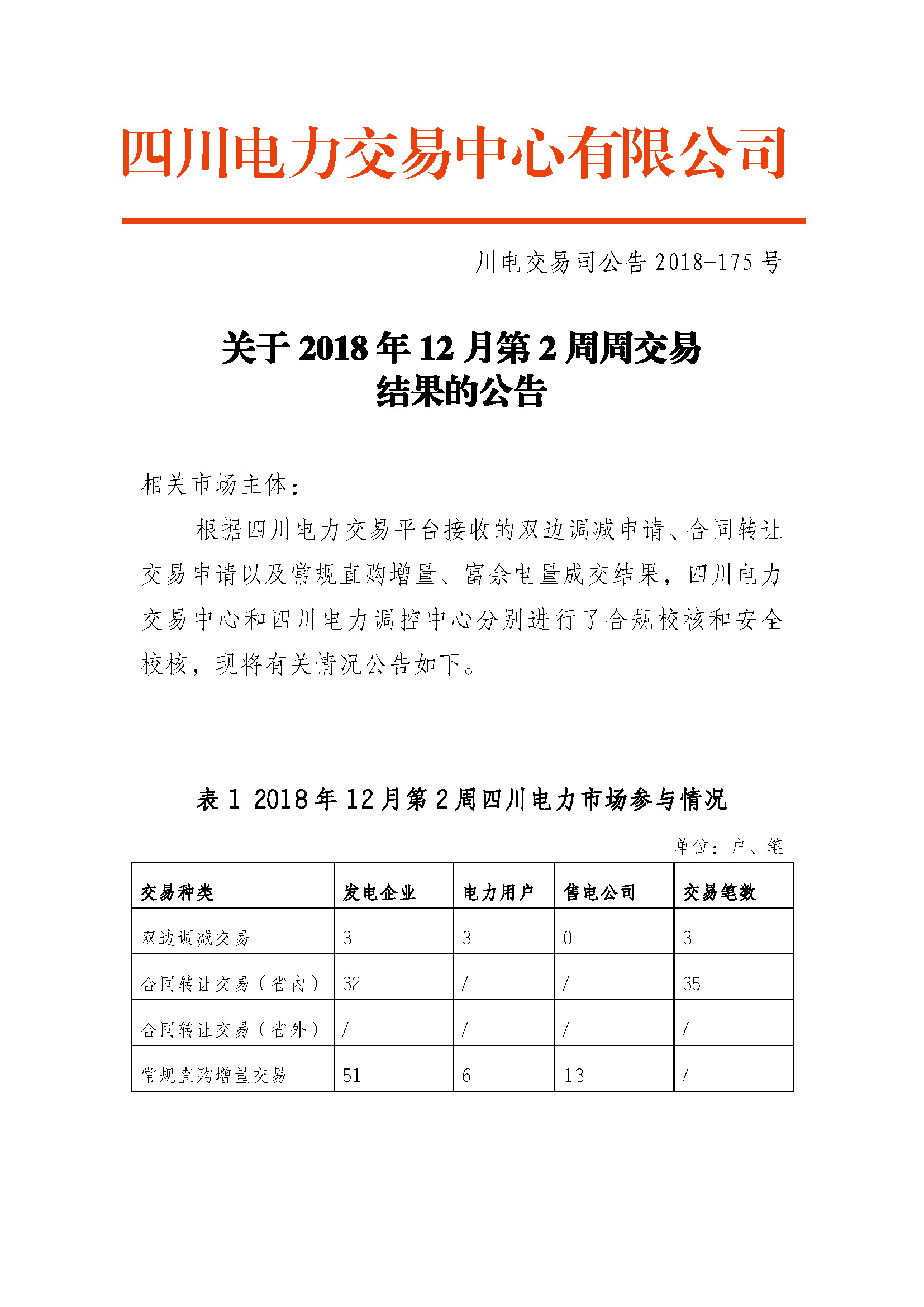 四川2018年12月第2周周交易:合同轉(zhuǎn)讓交易(省內(nèi))成交電量15.3萬兆瓦時(shí)