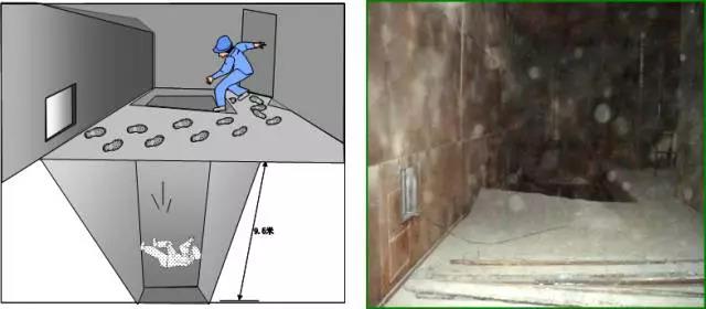 某廠一工作人員不慎踏入未設(shè)圍欄的起吊孔(12.6米),集中生智,雙手抓住起吊孔中間的工字梁,撿回一條命。