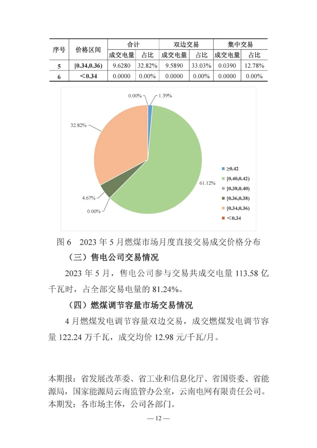 2023年5月,云南省內(nèi)市場(chǎng)化交易電量 139 81億千瓦時(shí),同比減少 10 97%。其中省內(nèi)清潔能源直接交易電量99 42億千瓦時(shí),平均成交價(jià)0 27487