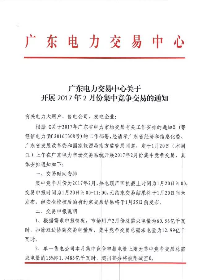 以下是《廣東電力交易中中心關(guān)于開展2017年2月份集中競爭交易的通知》和《2017年2月市場交易前安全約束信息披露》的通知原文: