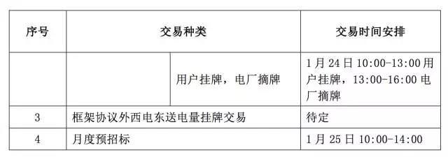 根據(jù)昆明電力交易中心發(fā)布的信息,云南2017年2月的電力市場化交易從1月19日到1月25日結(jié)束,交易品種涵蓋月度集中撮合交易、月度自主掛牌交易、框架協(xié)議外西電東送掛牌交易,當(dāng)然也包括日前電量交易。其中,最令各方關(guān)注的月度集中撮合交易的申報時間安排在2017年1月19日9:00-1月20日12:00,目前已經(jīng)結(jié)束。安排如下: