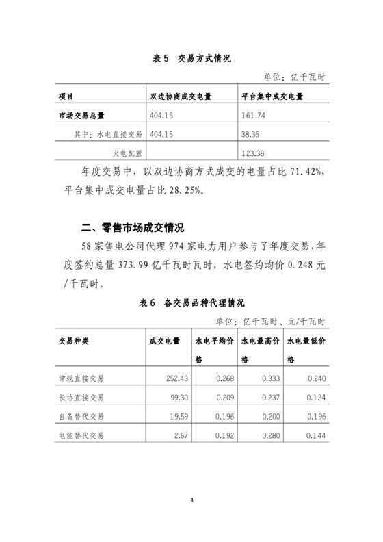 四川年度交易成交電量565.89億千瓦時 水電交易均價0.223元/千瓦時