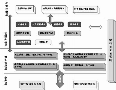 該方案以商業(yè)銀行全面預(yù)算和成本管理為核心,以商業(yè)銀行輔助管理系統(tǒng)(固定資產(chǎn)、薪資管理、庫(kù)存管理等)為支撐,通過(guò)數(shù)據(jù)接口平臺(tái)與商業(yè)銀行現(xiàn)有業(yè)務(wù)系統(tǒng)進(jìn)行集成應(yīng)用,對(duì)銀行業(yè)預(yù)算與控制、成本管理、固定資產(chǎn)管理、財(cái)務(wù)核算、集中采購(gòu)、人事與薪資管理、主管信息系統(tǒng)、經(jīng)營(yíng)業(yè)績(jī)管理、報(bào)表匯總、數(shù)據(jù)分析等進(jìn)行統(tǒng)一管理,為銀行決策層提供全面的查詢(xún)分析、總體監(jiān)控、風(fēng)險(xiǎn)監(jiān)管和輔助經(jīng)營(yíng)決策(見(jiàn)圖2)。