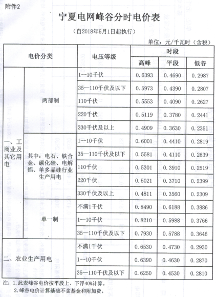 2.寧夏電網(wǎng)峰谷分時電價表