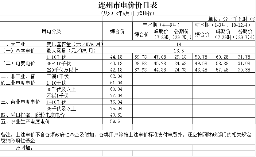 附件:全省各地電價價目表