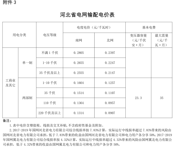 附件:1.河北省南部電網(wǎng)銷售電價(jià)表