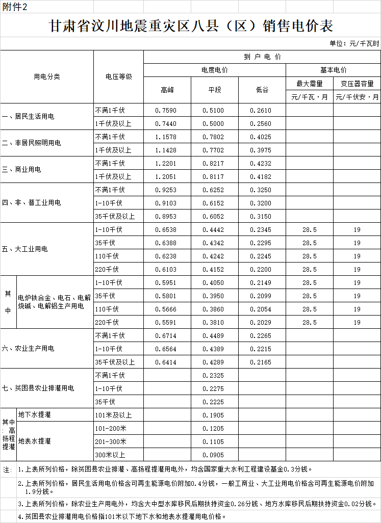 2.甘肅省汶川地震重災(zāi)區(qū)八縣(區(qū))銷(xiāo)售電價(jià)表