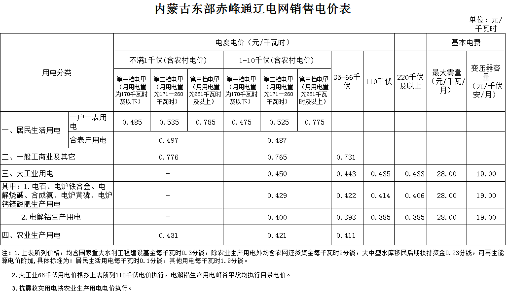 2.內(nèi)蒙古東部赤峰通遼電網(wǎng)銷售電價表