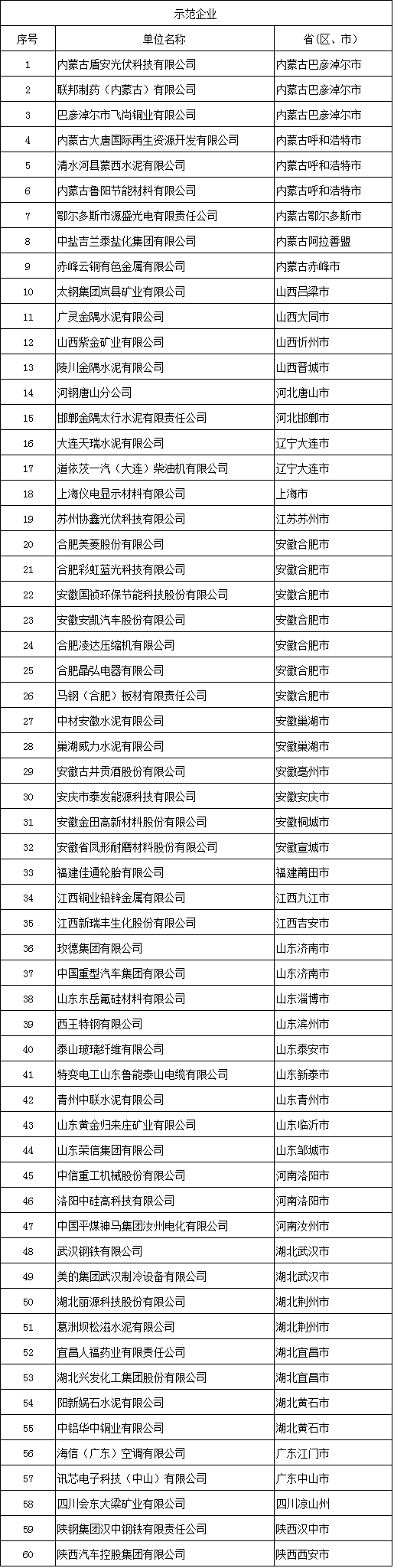 工信部日前公示了《全國工業(yè)領(lǐng)域電力需求側(cè)管理第四批示范企業(yè) (園區(qū))名單》,擬將內(nèi)蒙古盾安光伏科技有限公司等60家企業(yè)以及上海臨港裝備
