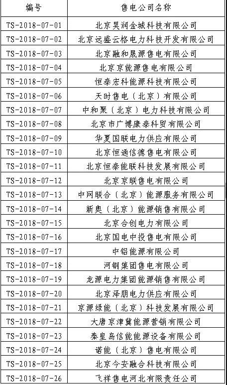 首都電力交易中心關(guān)于售電公司公示結(jié)果的公告
