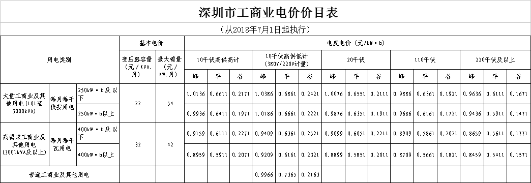 相關(guān)附件:深圳市工商業(yè)電價(jià)價(jià)目表2018年7月.xls